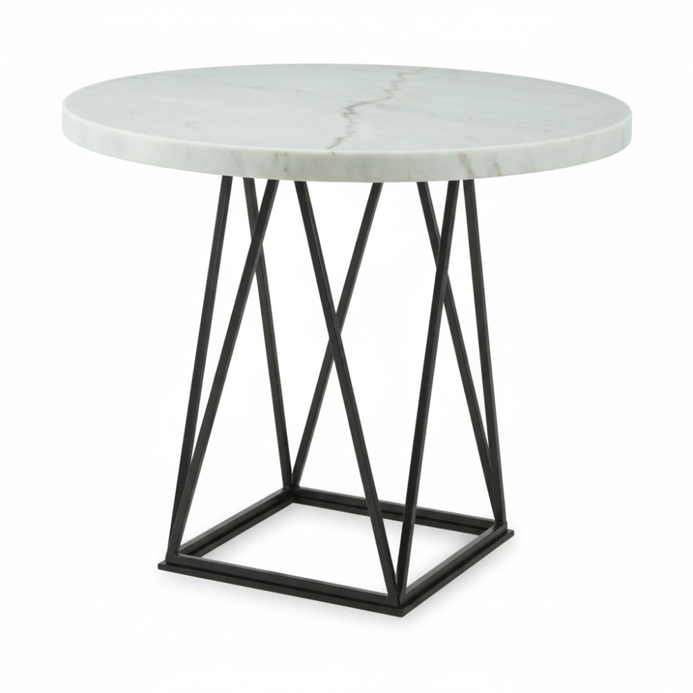 The Crystal Wire Café Table combines a refined marble top with a bold geometric metal wire base. Designed to make a visual statement, it is perfect for luxury cafés, bistros, and contemporary hospitality spaces.