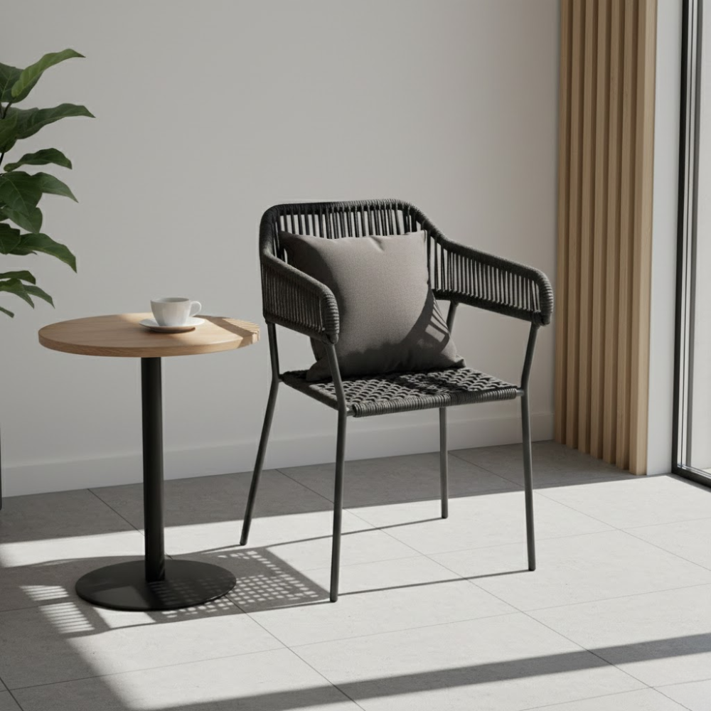 Dravion Solmere Quorra is designed for superior comfort with a wide seat and supportive armrests. Built on a strong iron frame, it is perfect for premium dining and restaurant use.