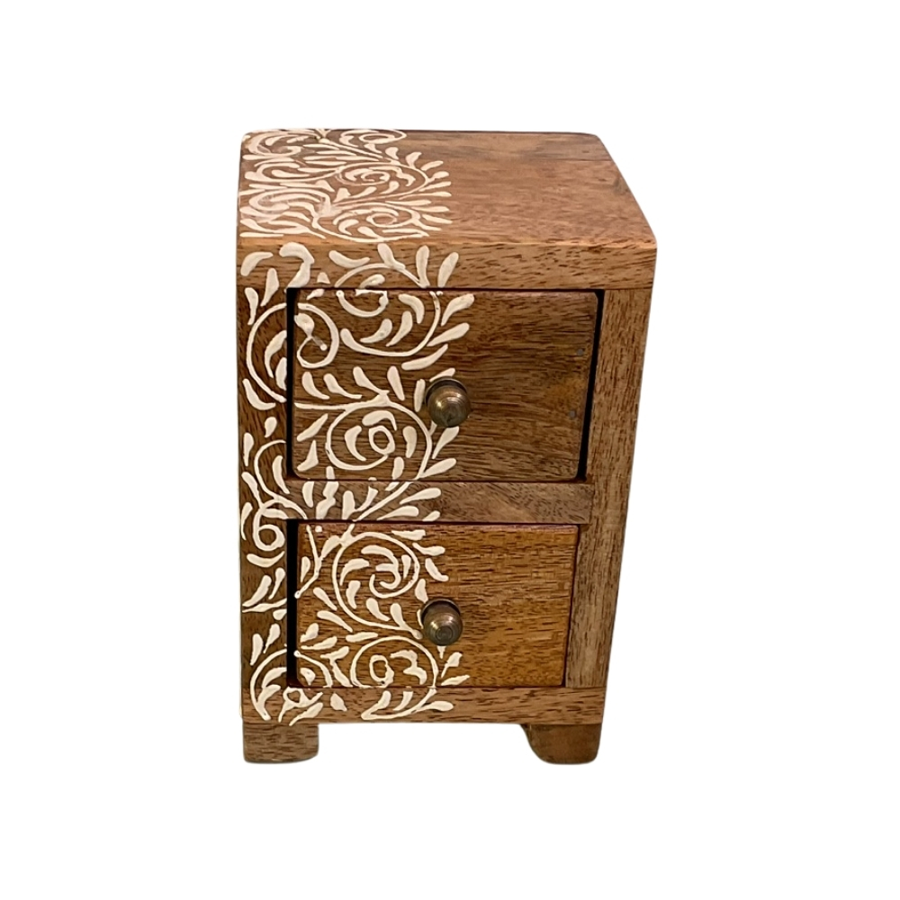 FloralEdge Tall Wooden Storage Unit is designed for those who need vertical storage without compromising on aesthetics. Constructed from durable seasoned wood, this unit features intricate floral carvings along its side panels, adding a graceful artistic element. The tall structure makes it ideal for organizing small items while saving floor or tabletop space. Its compact footprint allows it to fit easily on shelves, side tables, or desks. The hand-carved patterns reflect traditional craftsmanship, while the clean lines make it suitable for contemporary interiors as well. This storage unit can be used for jewelry, documents, accessories, or collectibles. Each piece is handcrafted, ensuring no two units are exactly alike. FloralEdge Storage Unit brings warmth, elegance, and artisanal value into your home décor.