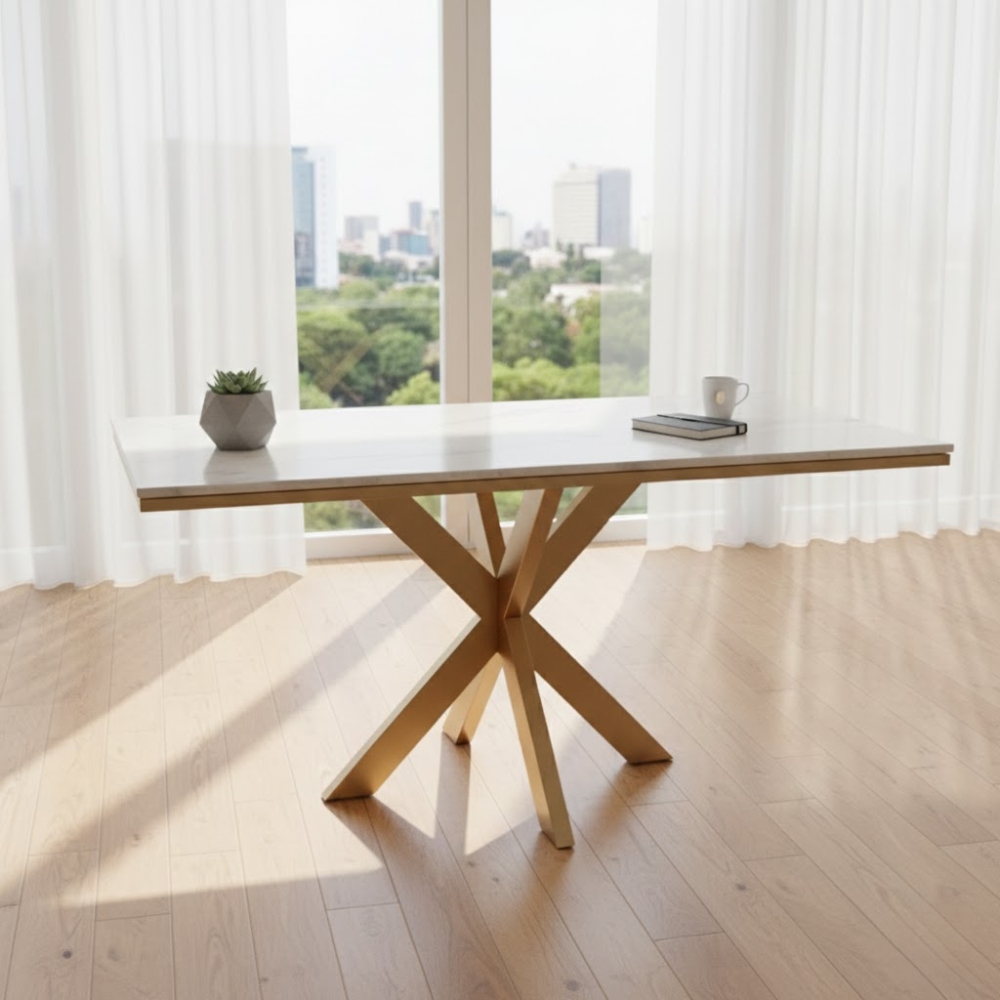 The Marble Cross Café Table pairs a sleek marble surface with a sculptural cross-leg base, creating a bold yet balanced design. Ideal for luxury cafés, restaurants, and hospitality interiors where elegance meets strength.
