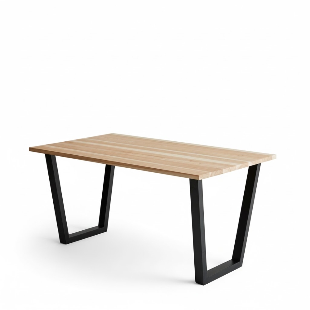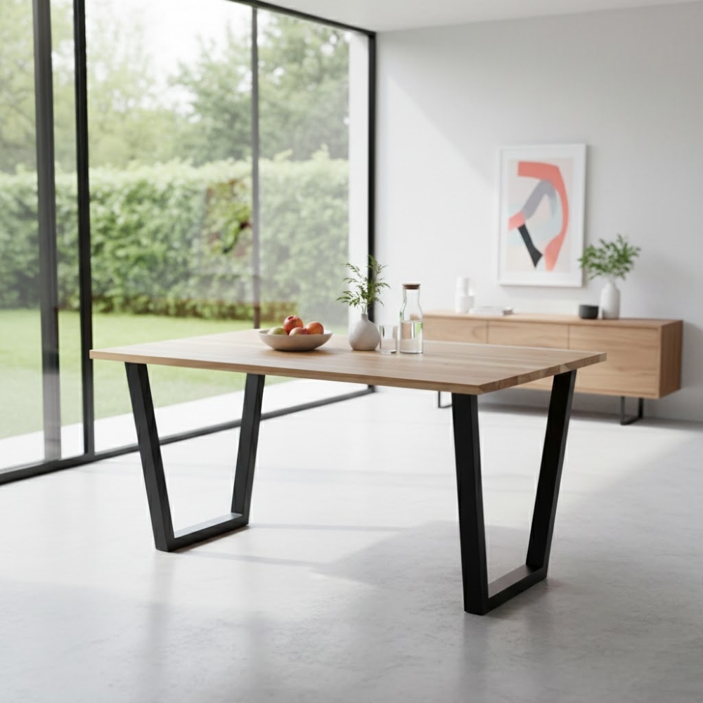The Metro Slab Dining Table blends a minimal wooden slab top with angular metal legs, making it ideal for contemporary dining spaces, cafés, and modern interiors.