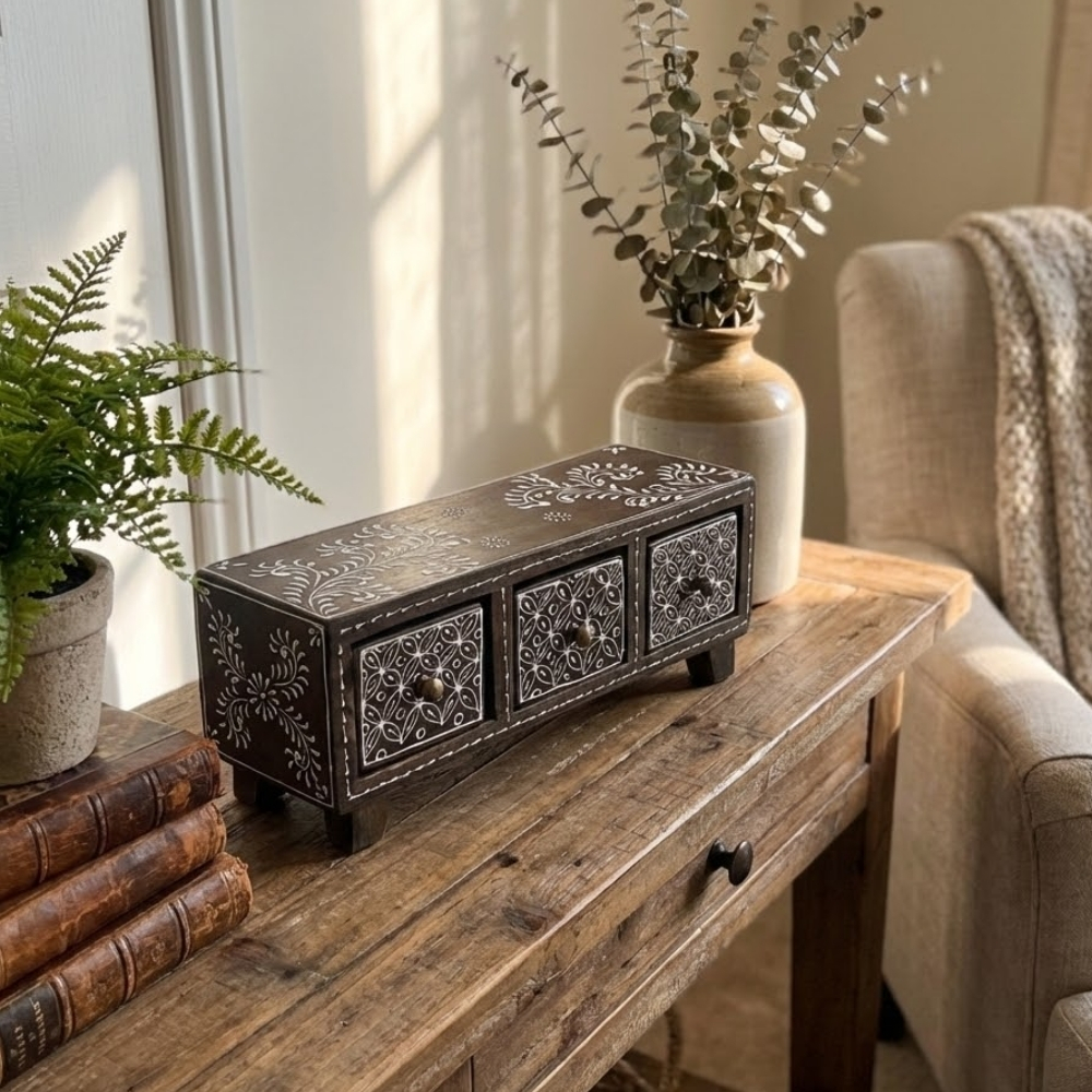 Crafted for simplicity and elegance, the MinimalHeritage Wooden Box features subtle traditional designs on a slim profile. Ideal for small accessories or keepsakes, it fits effortlessly into modern interiors while preserving handcrafted charm.