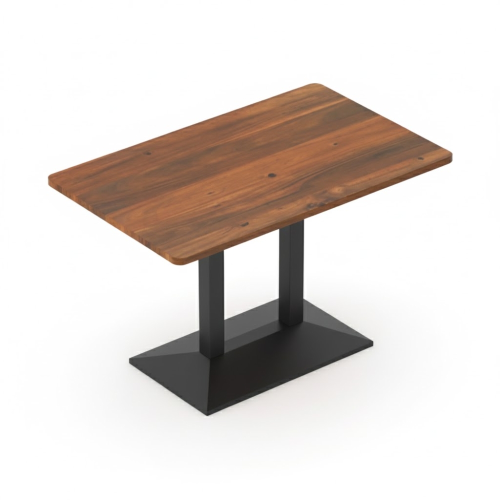 The MonoBase Café Table is designed with a clean rectangular wooden top and a strong central metal pedestal. Its space-efficient design makes it ideal for cafés, restaurants, and commercial dining areas where stability and simplicity matter.