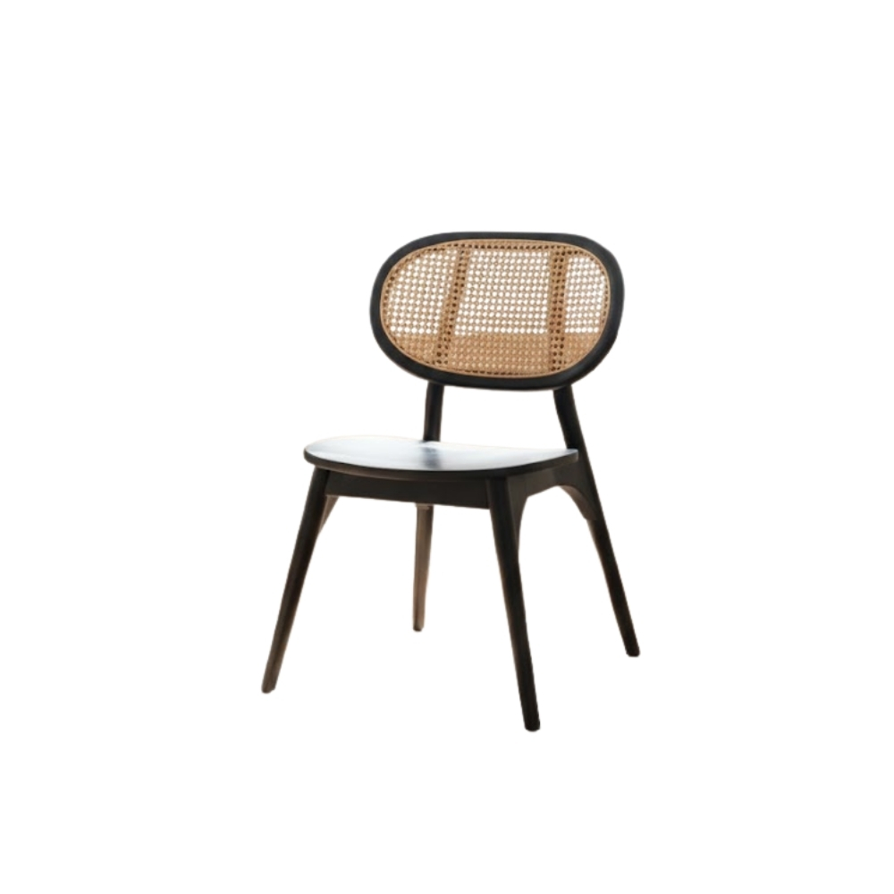 The Noir Cane Atelier Dining Chair is a refined expression of modern minimalism paired with classic cane craftsmanship. Featuring a sleek black wooden frame, handwoven cane backrest, and a sculpted seat, this chair brings timeless elegance and everyday comfort to premium hospitality interiors.