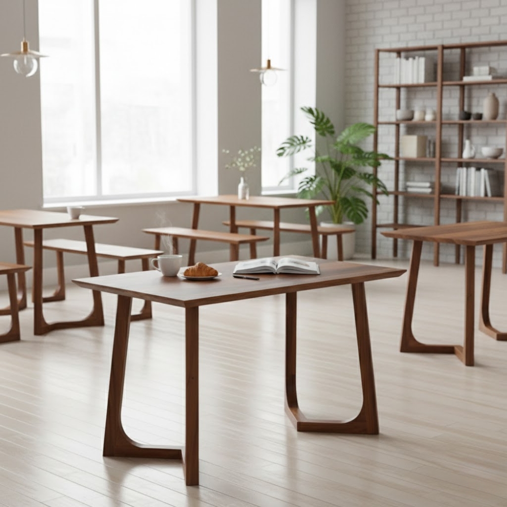 The Nordic Loop Café Table features a clean wooden top supported by elegantly curved loop-style legs. Inspired by Scandinavian design, it offers warmth, simplicity, and structural strength—ideal for cafés, boutique dining spaces, and modern interiors.