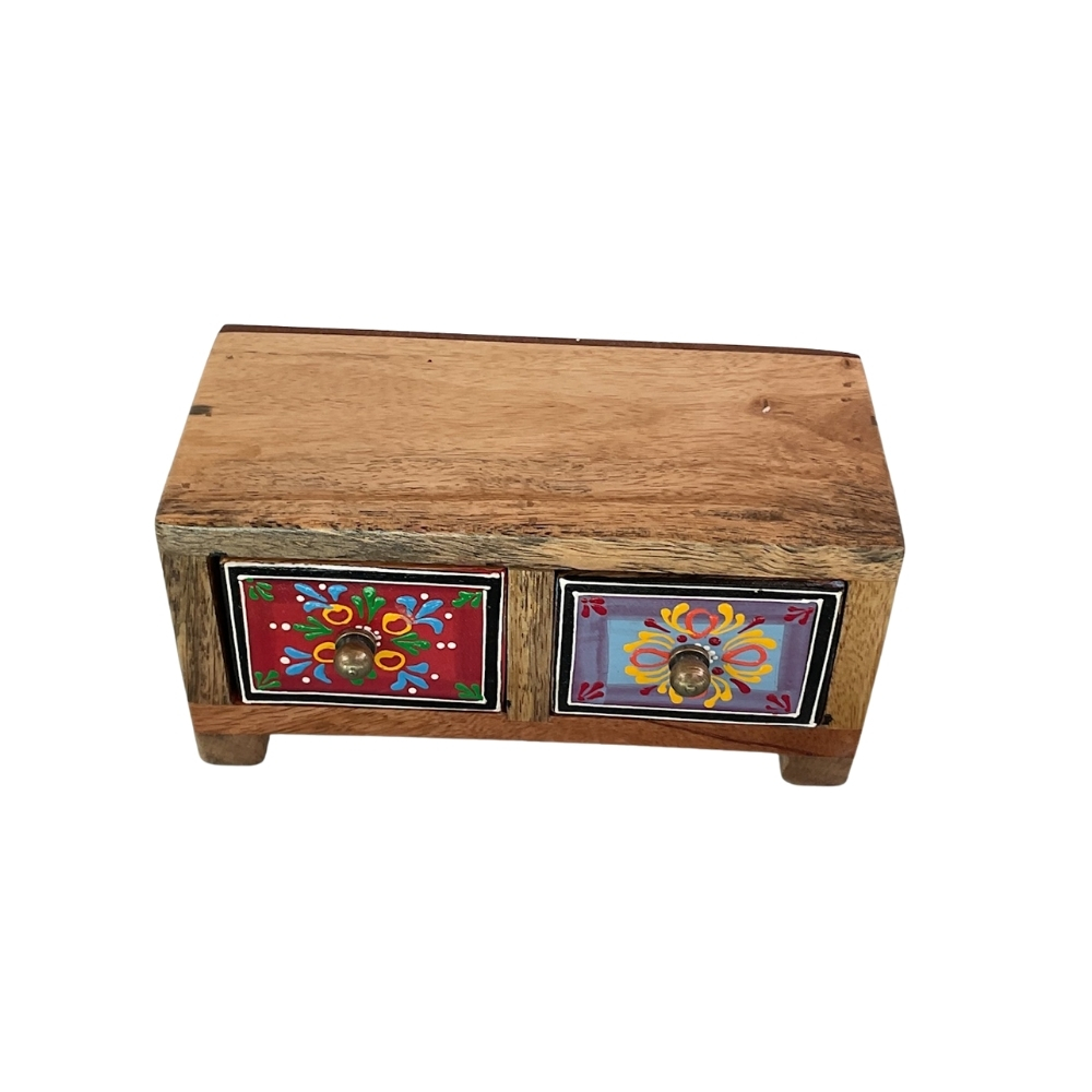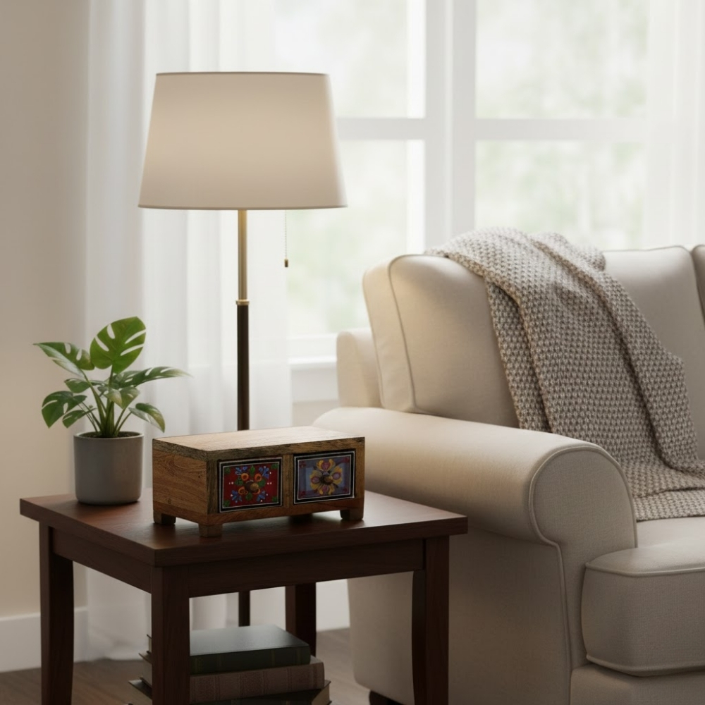 PetalLine Wooden Storage Chest showcases a refined wooden finish accented by a horizontal strip of hand-painted floral folk art. Designed for versatile storage, it fits seamlessly into modern and traditional interiors. A balanced blend of simplicity and handcrafted elegance.