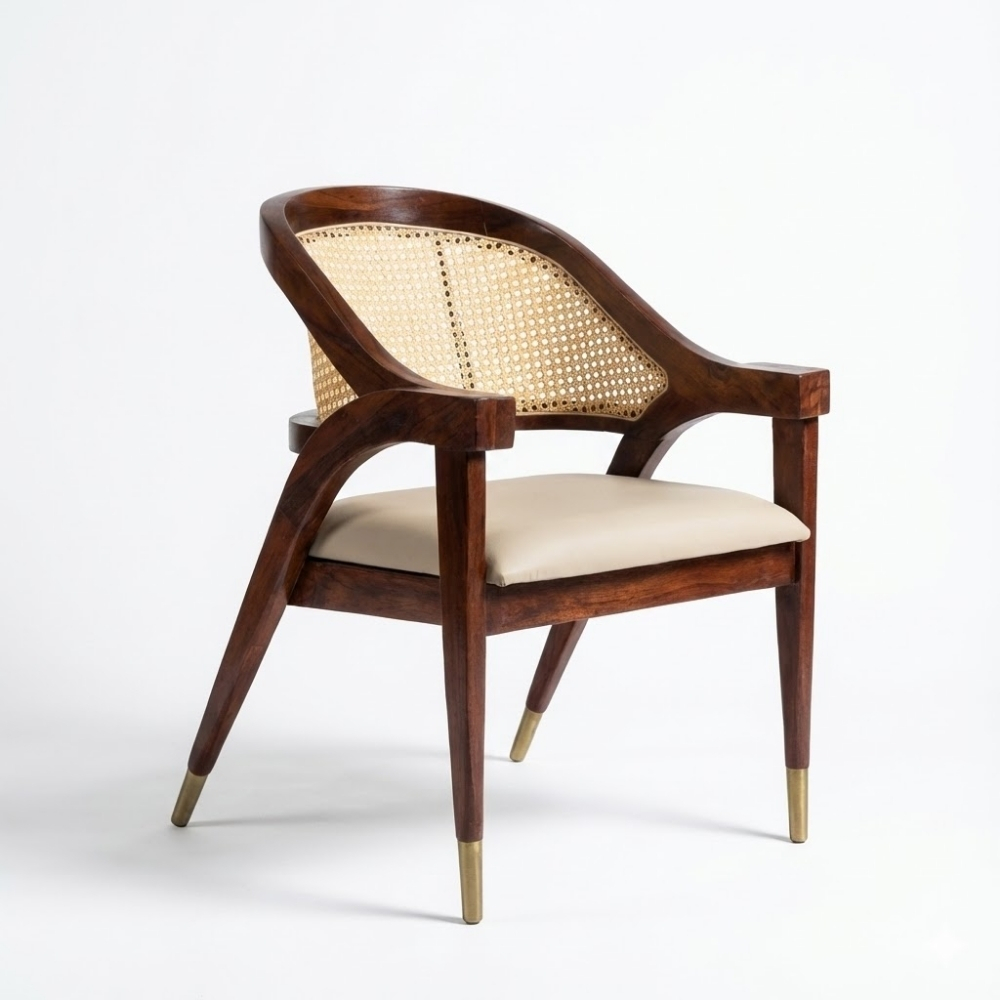 The Ravenna Cane Dining Armchair is a refined blend of timeless craftsmanship and contemporary comfort. Crafted from a solid wooden frame and complemented by a handwoven cane backrest, this armchair adds warmth, texture, and understated luxury to dining spaces. The gently curved arms and cushioned seat provide enhanced comfort, making it ideal for extended dining experiences.