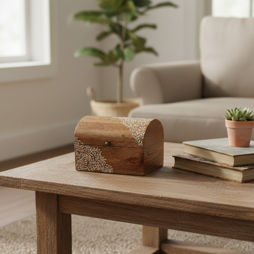 Ideal for storing jewellery, watches, accessories, letters, or cherished keepsakes, this wooden chest also works beautifully as a décor accent on dressing tables, coffee tables, shelves, or workspaces. With its understated elegance, it makes an excellent premium gift for weddings, anniversaries, housewarmings, or festive occasions.
