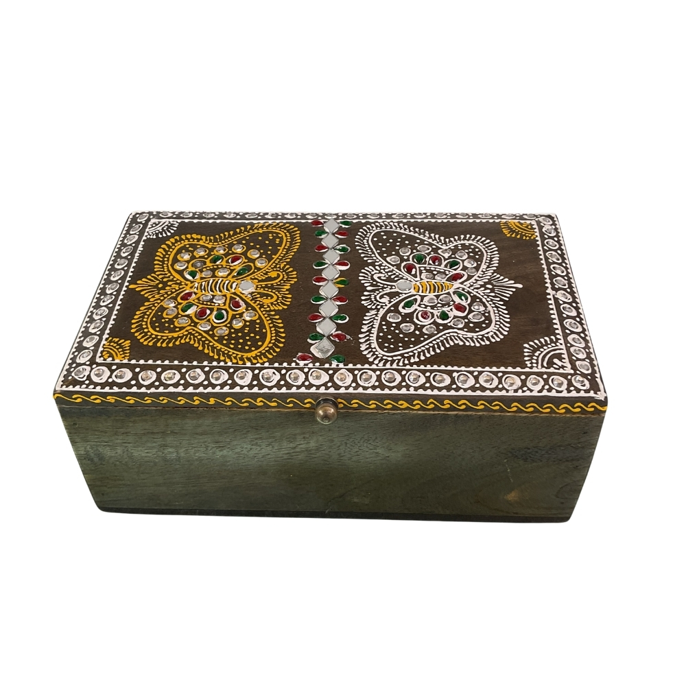 Designed for both beauty and function, the box includes a sturdy latch and smooth finish. Ideal for storing jewellery, keepsakes, or pooja essentials, it also works as a statement décor piece.