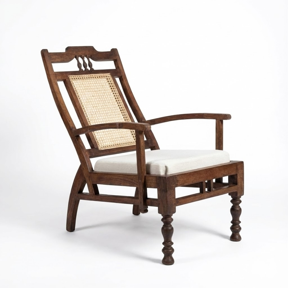 The Windsor Heritage Lounge Chair is a graceful fusion of classic craftsmanship and relaxed comfort, inspired by timeless European lounge seating. Built with a solid wooden frame, handwoven cane backrest, and a generously cushioned seat, this chair offers both visual elegance and lasting comfort. Its gently reclined profile and sculpted legs make it an ideal choice for hotel lounges, heritage resorts, luxury villas, and refined waiting areas.